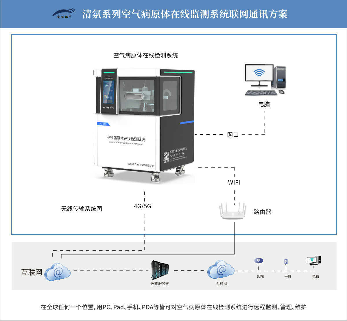 如以上功能不滿足,我們可以為您OEM/ODM更多清氛系列空氣病原體在線監測系統功能? 請聯系安帕爾! |